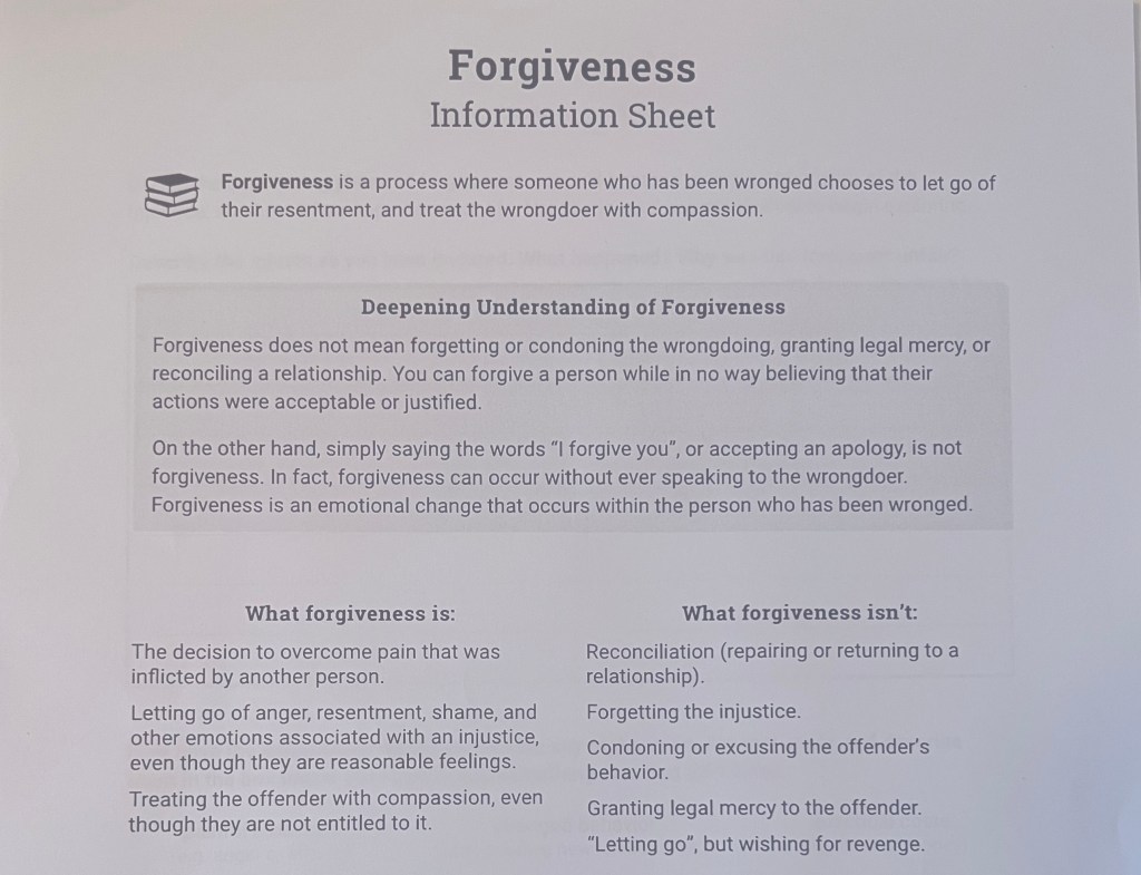 It came with a series of pages that I have to fill out. That was three weeks ago. I haven’t done it. I’m doing it today. What would I like to achieve in 2023? I would like to fill out these pages and quit holding on to the past. As the title suggests. Forgiving is for quitters.